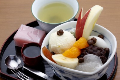 これは、あんみつにアイスクリームをトッピングした